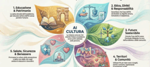 Un nodo spesso trascurato nel dibattito sull’IA riguarda il rapporto con il patrimonio culturale, materiale, immateriale e digitale. La memoria non è un archivio neutro, né il patrimonio può essere ridotto a un dataset addestrabile. Sono processi vivi di selezione, interpretazione e trasmissione, che richiedono contesto, mediazione e responsabilità.